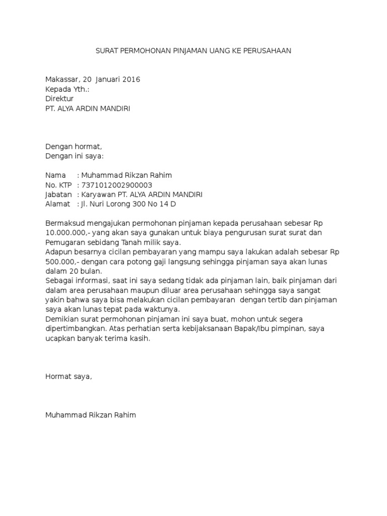 Contoh Surat Permohonan Pinjaman Uang Ke Perusahaan Pdf